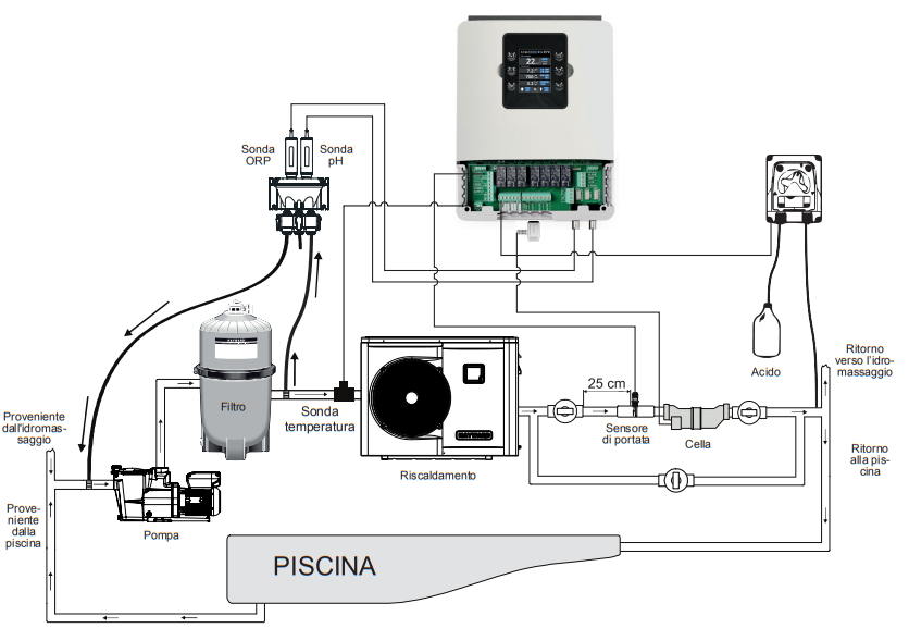 Il sito ha uno storico che memorizza tutti i dati rilevati dalla prima installazione al momento in cui viene interrogato. Inoltre è in condizione di lanciare allarmi sia sulla centralina che via mail, in modo da potere eventualmente intervenire da remoto. Il risultato è un costante equilibrio dell’acqua, un tempo di filtrazione adeguati alla stagione e conseguentemente un notevole risparmio energetico e di prodotti chimici.