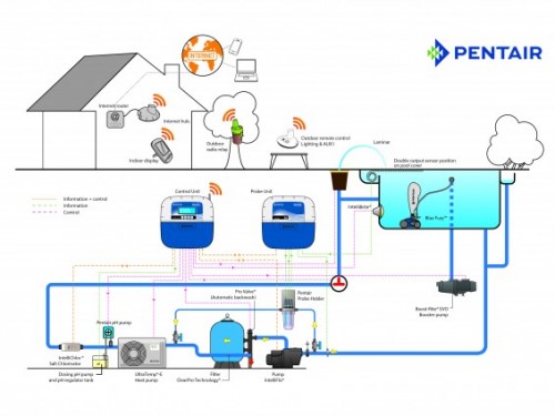 Il sistema IntelliPool™ controlla automaticamente online le diverse funzioni della piscina interfacciandosi attraverso una comunicazione bidirezionale in modalità remota con i dispositivi Pentair.