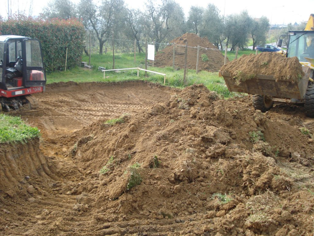 a. Tracciare il perimetro della piscina sul terreno;Il tracciamento dello scavo deve essere fattoĀ secondo le istruzioni allegate al kit, possibilmente tracciando sul terreno la forma della piscina con il gesso. La tracciatura eseguita mostra lo specchioĀ dāacqua della piscina.Ā Lo scavo va realizzato 80/100 cm più largo di questa linea, perĀ permettere la posa dei pannelliĀ e il passaggio delle tubazioniĀ dellāimpianto.
