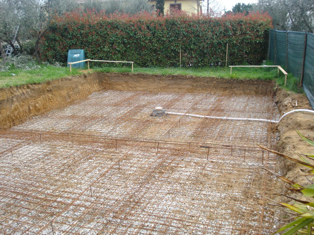 b.Ā L’armatura della fondazione dovrĆ essere effettuata in base alle caratteristiche del terreno tenendo conto della leggerezza del pannello. Prima di procedere al getto ,fissare tutti i componenti che risulteranno poi sul plateaĀ della piscina (prese di fondo, bocchetteĀ di mandata, bocchette ariaā¦) Mettere dei livelli per poter fare il getto secondo la forma scelta eĀ poi gettare il calcestruzzo livellandolo con una staggia inĀ modo uniforme. ( tolleranza fuori piano 0.5 mm )