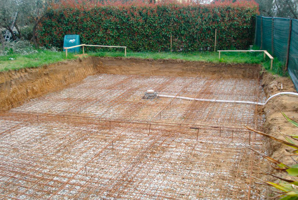 B. Lāarmatura della fondazione dovrĆ essere effettuata in base alle caratteristiche del terreno tenendo conto della leggerezza del pannello. Prima di procedere al getto ,fissare tutti i componenti che risulteranno poi sul platea della piscina (prese di fondo, bocchette di mandata, bocchette ariaā¦) Mettere dei livelli per poter fare il getto secondo la forma scelta e poi gettare il calcestruzzo livellandolo con una staggia in modo uniforme. ( tolleranza fuori piano 0.5 mm )