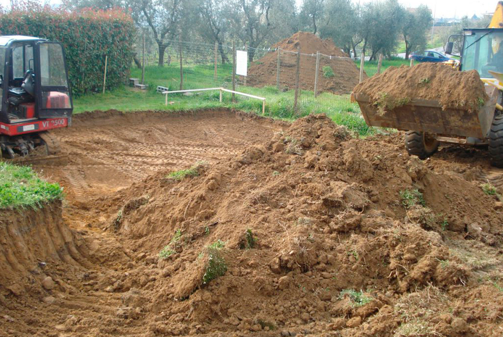 A. Tracciare il perimetro della piscina sul terreno;Il tracciamento dello scavo deve essere fattoĀ secondo le istruzioni allegate al kit, possibilmente tracciando sul terreno la forma della piscina con il gesso. La tracciatura eseguita mostra lo specchio dāacqua della piscina. Lo scavo va realizzato 80/100 cm più largo di questa linea, per permettere la posa dei pannelli e il passaggio delle tubazioni dellāimpianto.